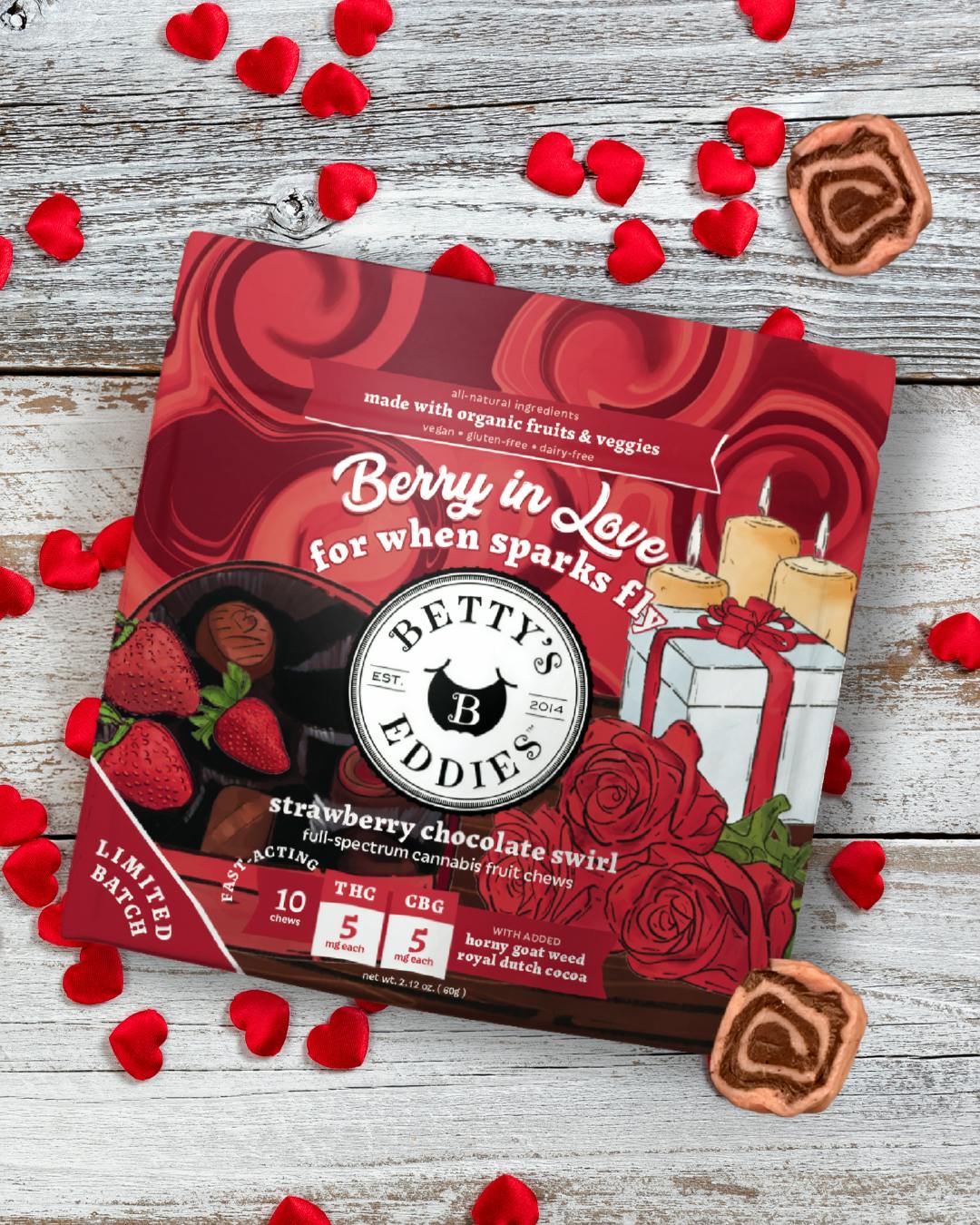 Berry In Love (H) 50mg 10pk 5mg Strawberry & Chocolate Swirls- Betty's Eddies