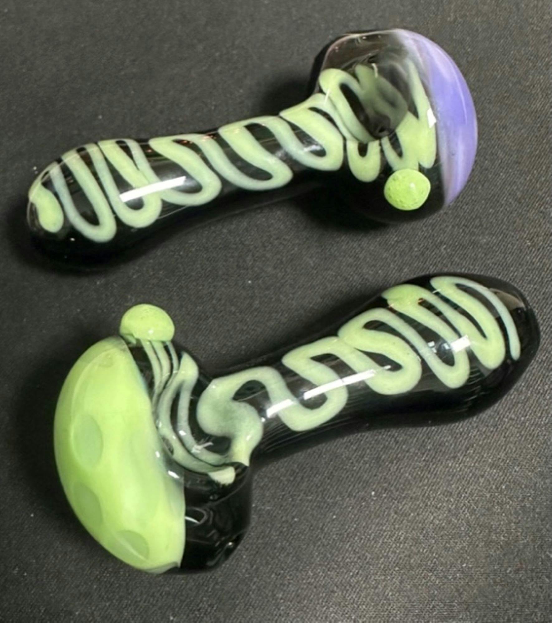 Glass Spoon Hand Pipe w/ Black + Slyme 3.5 "